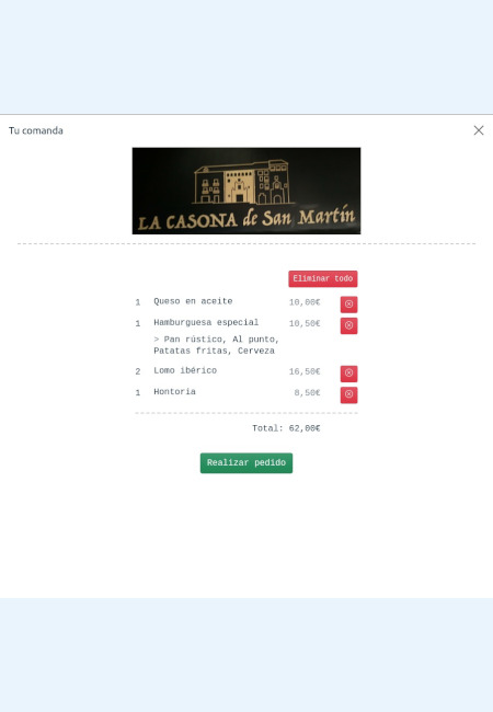 Con la web haycarta.es podrás mostrar tu carta online interactiva a los clientes sin necesidad dedescargar varios pdf y mostrando toda la información de tus platos, menús, raciones, ... así comosus fotografías, elaboración y alérgenos.