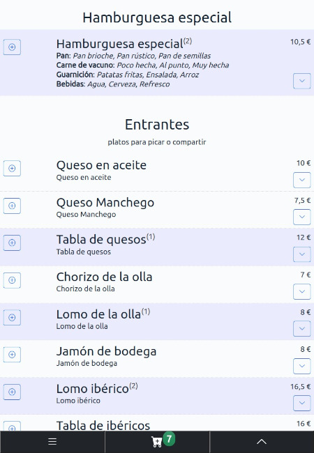 Navega, elige la carta, consulta información adicional, selecciona platos para tu comanda